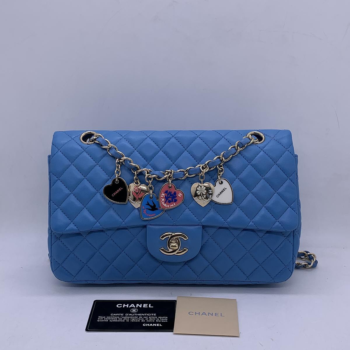 Chanel Classic Flap (CF) Limited Edition Valentine's Day Blue Crossbody Bag.
