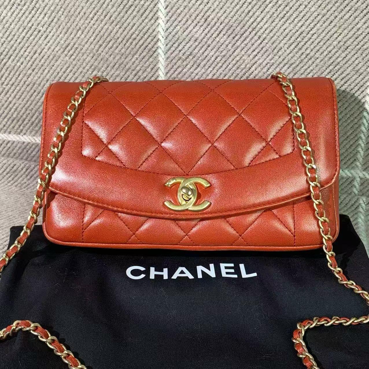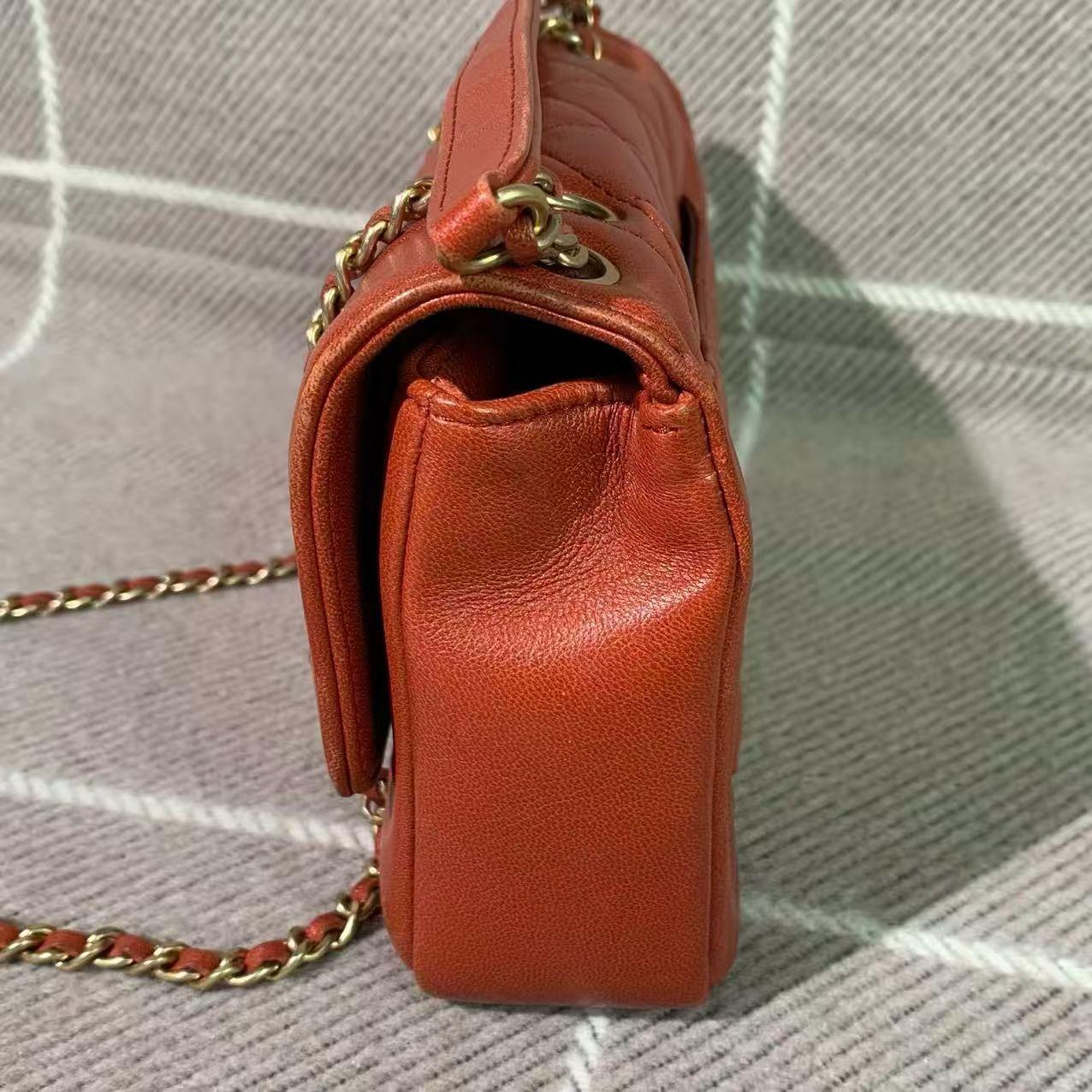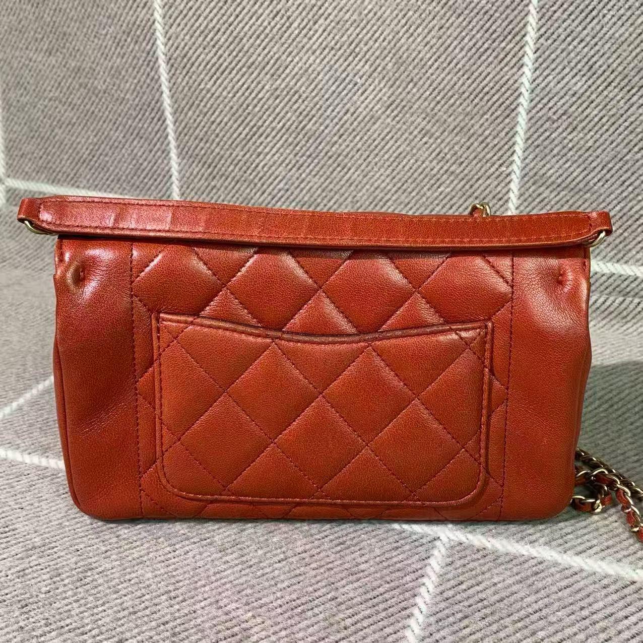 Chanel Classic Flap Lady Chain Bag - Red Leather with Gold Clasp