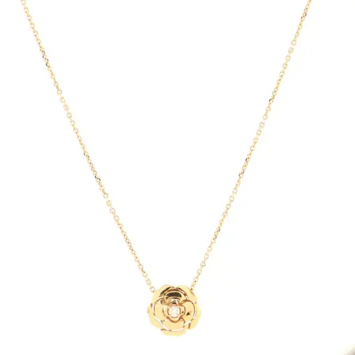 Chanel Extrait de Camellia Pendant Necklace 18K Rose Gold with Diamond Accessories box and warranty card