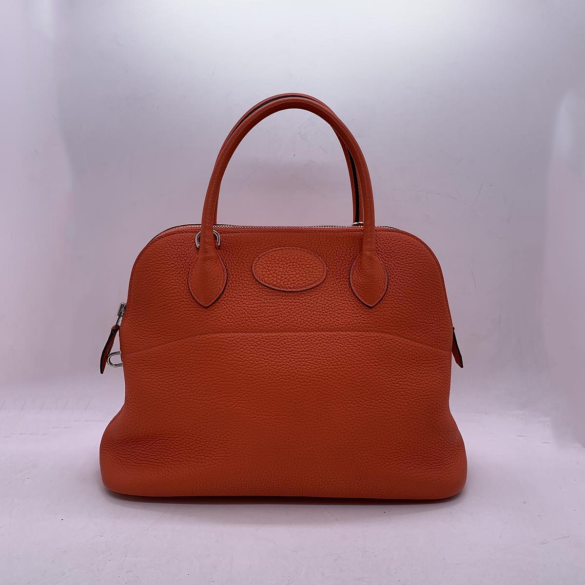 Hermes Bolide 31 in Orange Feu Taurillon Clemence leather.