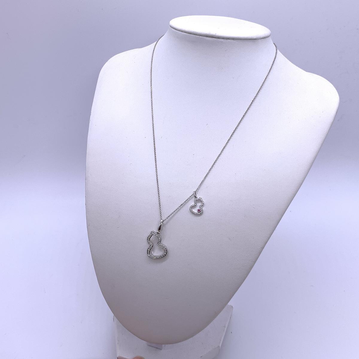 Qeelin Wulu Collection Petite Gourd Pendants, 18K White Gold with Diamonds, Women's Necklace. A full set with two pendants, original price over 40,000 RMB. Complete with box and certificate. Ideal for personal use or gifting.