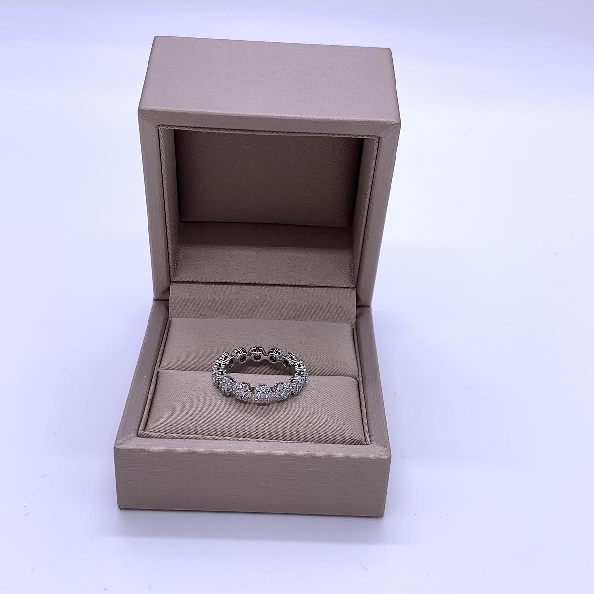 Van Cleef & Arpels Fleurette Sunflower 18K White Gold Pave Diamond Wedding Band, Size 53.