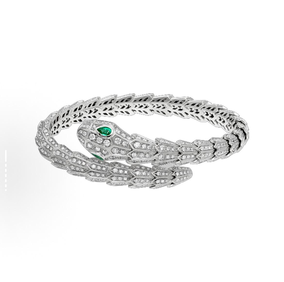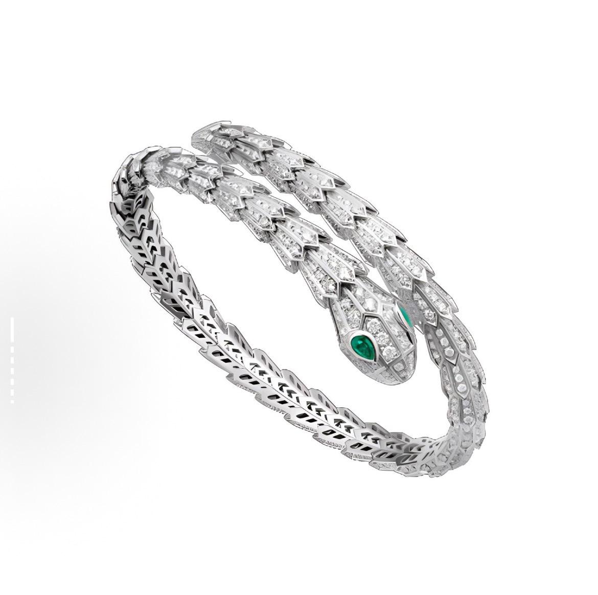 Bvlgari SERPENTIVIPER series Elegant Snake Head 18K White Gold Snake-shaped Bracelet Set with Diamond-Set Emerald Stones Accessory box certificate