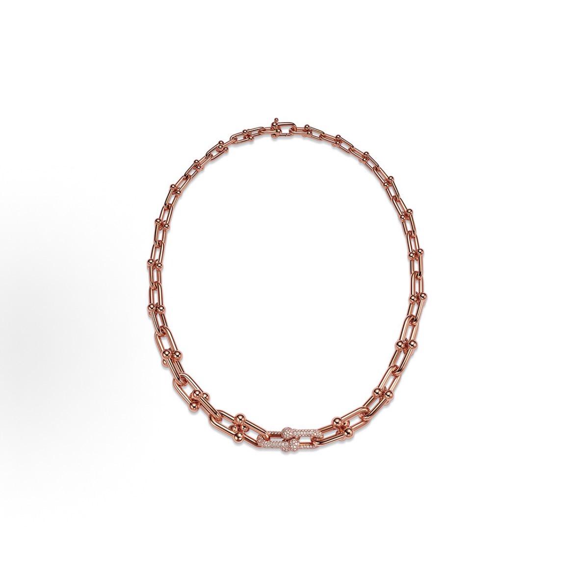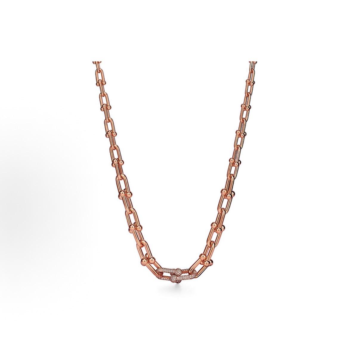 Tiffany & Co. Hardwear series chain link design 18K rose gold diamond-studded necklace Accessories box